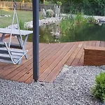 The 2-bedroom Ferienhaus Mit Schwimmteich In Idyllischer Lage Jeleniewo features a terrace with views of the pool as well as a private swimming pool.